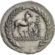 | Description du revers | Bridled horse standing right, left foreleg raised, beneath which eagle standing right on thunderbolt. Between horse`s legs, one-handled vase. In exergue, HPAKΛEIΔHΣ. All within wreath. |