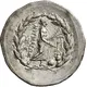 | Reverse description | Apollo Grynius standing right with laurel branch and patera; to right, omphalos and amphora. In left field, two monograms. All within laurel wreath. |