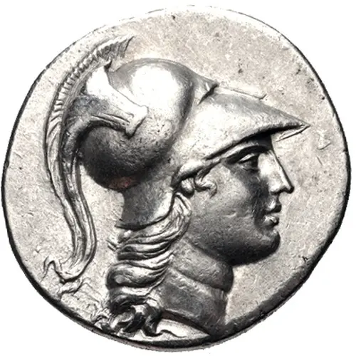 | Beschrijving voorzijde | Helmeted head of Athena facing right |