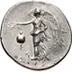 | Beschrijving keerzijde | Nike flying left, holding a wreath. To the left, a pomegranate above the name of the magistrate |