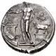 | Reverse description | River god Selinos, nude, standing and facing in front, head turned left, holding in his right hand a phiale over lighted altar and cradling in left arm a filleted palm branch. To his left, a rooster standing left before the altar. To his right, a selinon leaf above bull standing left on basis. |