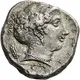 | Descrição do reverso | Head of the nymph Segesta right, wearing earring and necklace, hair caught in amphyx and sphendone. Behind head, ear of barley. |