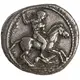 | Obverse description | Helmeted warrior riding right, preparing to cast a spear; dog below. |