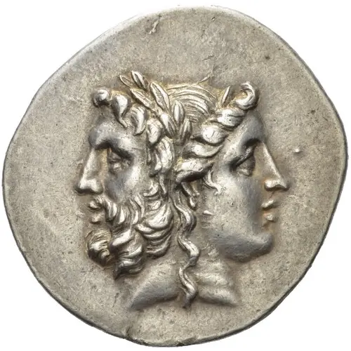 | Aversbeschreibung | Janiform head composed of a laureate and bearded head of Zeus to left and a diademed head of Hera to right |