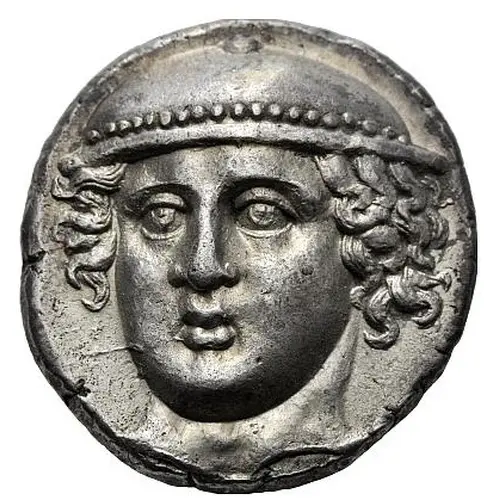 | Popis líce | Head of Hermes facing, turned slightly to left, wearing a petasos |