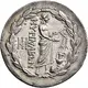 | Reverse description | Apollo Orynios standing right, holding branch and phiale; at his feet, omphalos and amphora. In inner left field, monogram. All within wreath. |