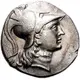 Ön yüz açıklaması Head of Athena right, wearing crested Corinthian helmet.