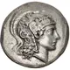 | Aversbeschreibung | Head of Athena Parthenos right, wearing crested Attic helmet decorated with Pegasos above the foreparts of five galloping horses. |