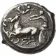 | Описание реверса | Fast quadriga driven left by charioteer holding reins with both hands; in field above, Nike flying right, holding taenia and wreath to crown the charioteer. In exergue, KATANAIΩΝ, fish left. |