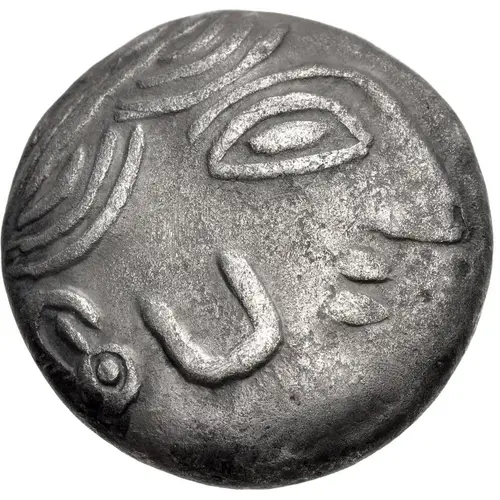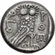 Opis awersu Stylized helmeted bust of Athena right, one crescent on cheek below eye.