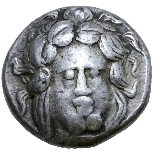 | Mô tả mặt trước | Facing, laureate head of Apollo. |
