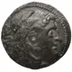Zeus seated on stool-throne left, eagle on outstretched right hand, sceptre in left hand; in left field sphinx seated left on horizontal amphora and in exergue magistrate name. |