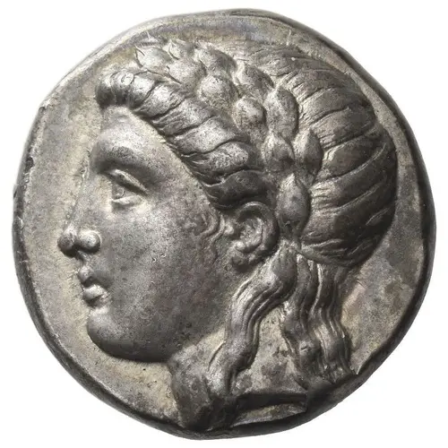 | Descripción del anverso | Laureate head of Apollo left. |