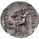 Zeus seated on stool-throne left, eagle on outstretched right hand, sceptre in left hand; in left field Corinthian helmet right above ΜΑ and below the throne monogram. |