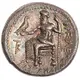 | Descrição do reverso | Zeus seated on stool-throne left, eagle on outstretched right hand, sceptre in left hand; in left field monogram. |