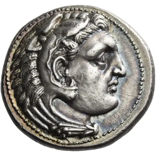 | Aversbeschreibung | Head of Heracles right, wearing lion`s skin headdress; on lion`s mane, NIKOKΛEOYΣ. |