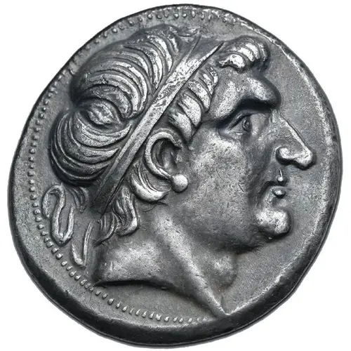 | Reverse description | Artemis-Bendis seated to left on rock, holding two spears and heavy sword in scabbard, round shield with rings or rivets resting by side; in background, stump of tree with spoils of war; ΒΑΣΙΛΕΩΣ to right, ΝΙΚΟΜΗΔΟΥ to left, monograms in inner left field and exergue. |