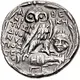 | Descrição do reverso | Owl standing right, head facing, on amphora; magistrates’ names in fields; gorgoneion to right; H on amphora, ΠE below; all within wreath. |