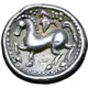| Reverse description | Rider on horseback to left; III above, three pellets above horses head, dolphi (?) below horse. |