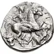 | 背面描述 | Warrior on horse rearing right, spearing enemy warrior who defends with shield and spear below; boukranion to lower left. |
