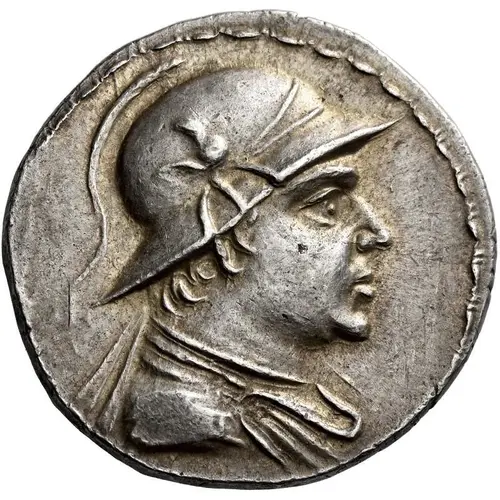 | Obverse description | Diademed and draped bust of Plato right, wearing crested helmet adorned with bull`s horn and ear. Fillet border. |