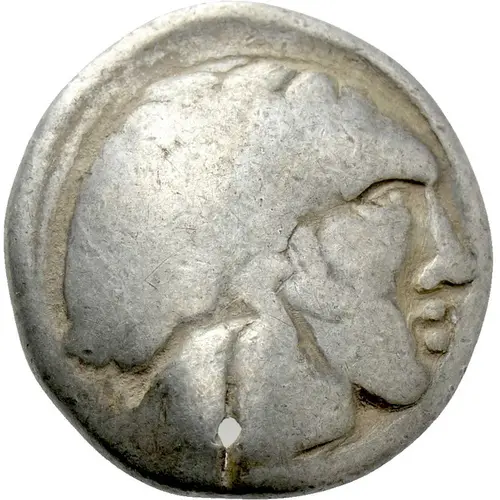 | Описание аверса | Stylized laureate head of Zeus right. |