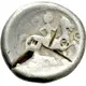 | Описание реверса | Stylized horse and rider right; symbol to right. |