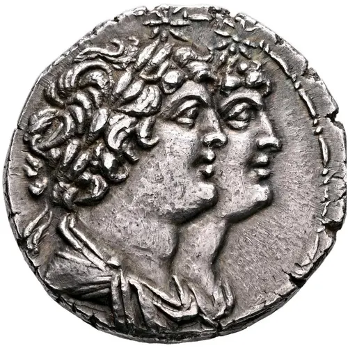 | 表面の説明 | Jugate laureate and draped busts of the Dioskouroi right facing, and a star above each of them. |