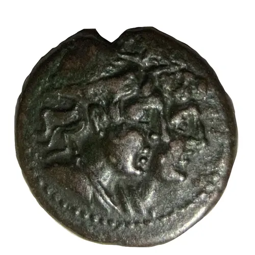 | Descrição do anverso | Jugate draped busts of the Dioskuri right, wearing piles |