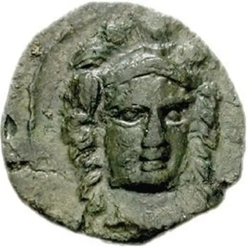 Descripción del anverso Helmeted head of Athena facing slightly right