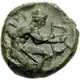 Descripción del reverso Nude warrior, wearing pileus, kneeling right while shooting an arrow