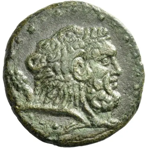| Descrição do anverso | Head of bearded Heracles right, wearing lion skin; club over shoulder. |