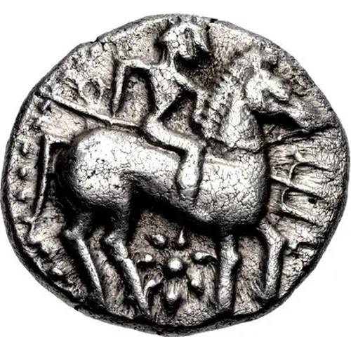 | 表面の説明 | Horseman advancing left, holding trident with left hand. star below |