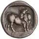 裏面の説明 Bull standing to right, head turned back to left; all within incuse square.