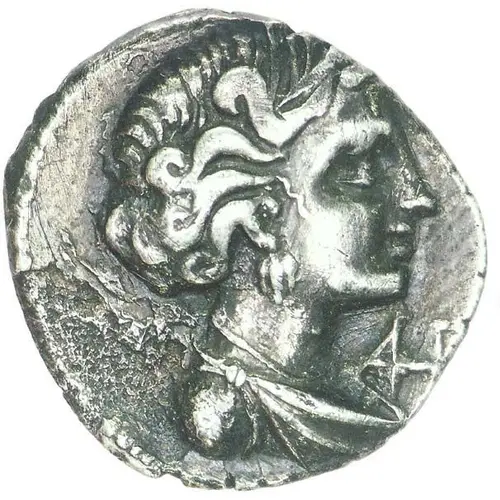 | Ön yüz açıklaması | Arthémis to the right. Fines inscriptions remaining from an over-strike |