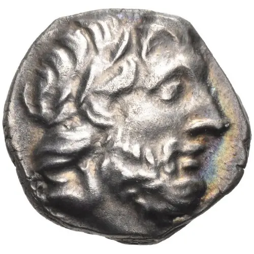| Popis rubu | ΚΩ below coiled serpent; to left, ΛΟΧΟΣ; to right, ΠΑΡΜΕ; all within shallow square incuse; below incuse, Δ. |