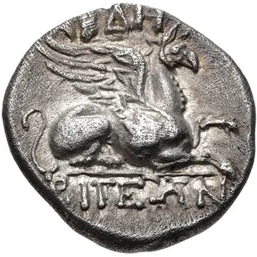 | Obverse description | Griffin crouching right. |