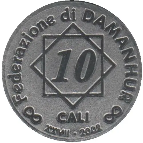| Légende de l’avers | 10 CALI Federazione di DAMANHUR XXVII - 2002 (Translation: 10 CALI Federation of DAMANHUR XXVII - 2002) |