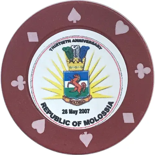 | Aversbeschreibung | The obverse shows the Coat of Arms of Molossia, with the words `30th Anniversary` and the anniversary date, 26 May 2007 |
