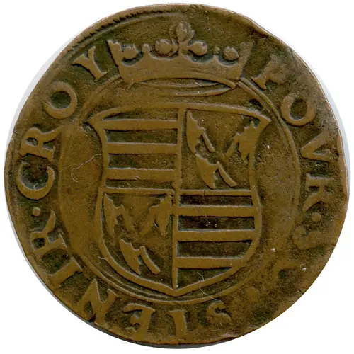 | 表面の説明 | Crowned and quartered shield of Croy and Renty, legend around |