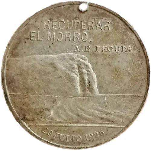 | Надписи аверса | RECUPERAR EL MORRO A.B.LEGUIA 29. JULIO 1925 (Translation: Get back the cape A. B. Leguia) |