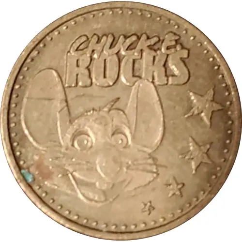 | Obverse description | Face of Chuck E. Cheese, logo and four five-pointed stars incrementally increasing. |