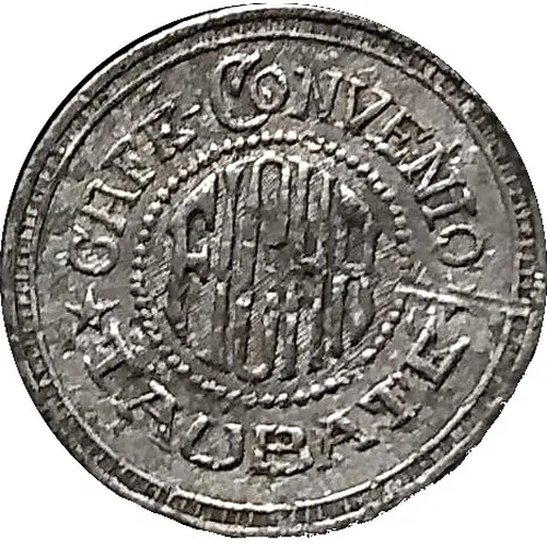 | Descrizione del dritto | In the middle, the word `FICHA` inside a circle of pearls and around the caption `Café-Convênio * Taubaté *`. |