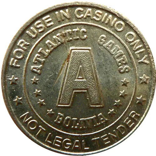 | Chữ khắc mặt trước | FOR USE IN CASINO ONLY ATLANTIC GAMES A BOLIVIA NOT LEGAL TENDER |