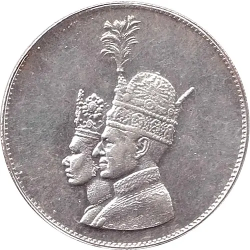 | Описание аверса | Left Busts Of Mohammadreza Pahlavi and Farah Pahlavi. |