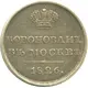 | Chữ khắc mặt sau | КОРОНОВАНЪ ВЪ МОСКВѢ 1826. (Translation: Crowned in Moscow 1826) |