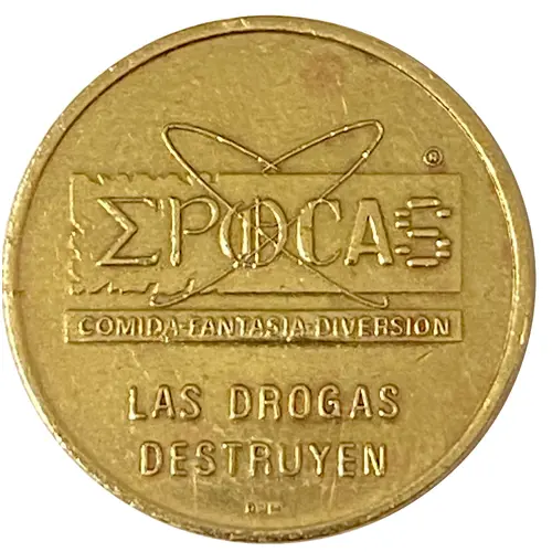| Legenda do anverso | EPOCAS COMIDA-FANTASIA-DIVERSION Las Drugas Destruyen RWM (Translation: Translated from Spanish to english. TIMES FOOD-FANTASY-FUN DRUGS DESTROY) |