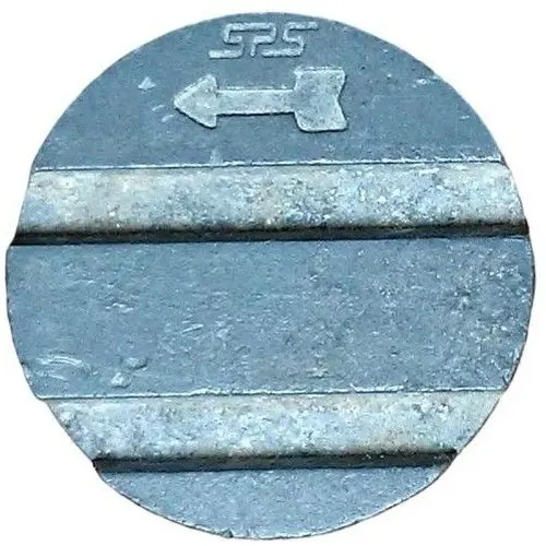 | Obverse description | Two horizontal grooves, a little arrow and the SPS mark. |