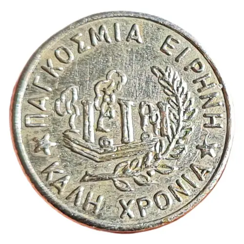 | Leyenda del anverso | ΠΑΓΚΟΣΜΙΑ ΕΙΡΗΝΗ ΚΑΛΗ ΧΡΟΝΙΑ (Translation: World peace Happy new year) |