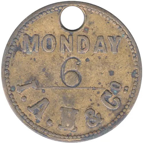 | Opis líce | MONDAY (Stamped #) I.A.H. & CO .. |